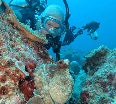 A graduate of Florida International University in Marine Biology, with a sub-speciality in coral genetics, Zach is a powerhouse when it comes to scientific background. A virtual encyloypedia of anything marine, Zach has an uncanny knack for capturing amazing animal behaviors. From "walking" coconut octopus to leaping bottlenose dolphins, marine animals seem to find Zach as interesting as he does.