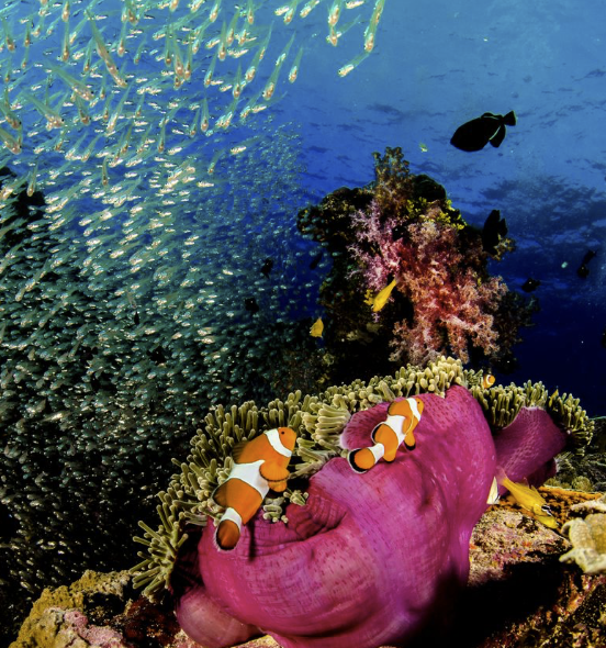 Subjects: Over 18 species of shark, marine mammals, rays, tooth whales, baleen whales, fish, corals, invertebrates -exhibiting play, mating, hunting and people watching" behaviors.
